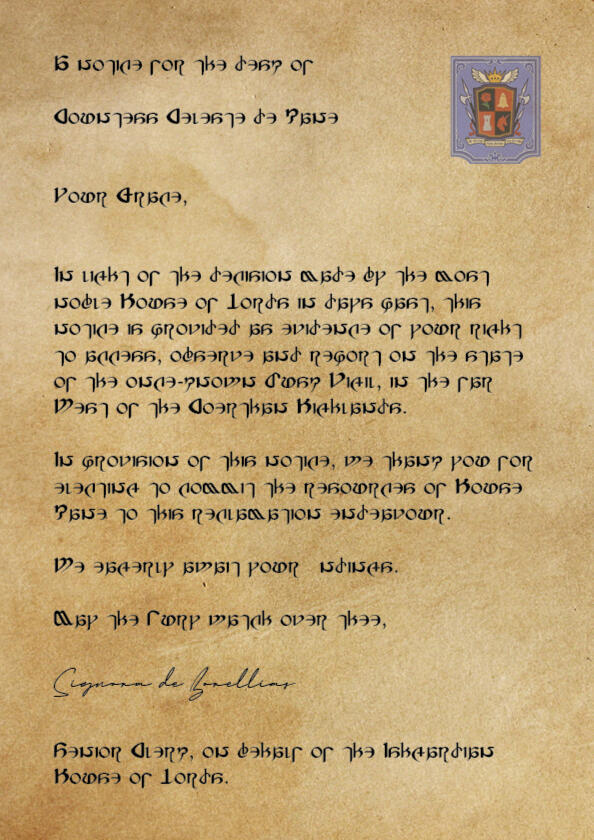 As a serving House of the House of Lords, House Kane has vested interest in the following motions: